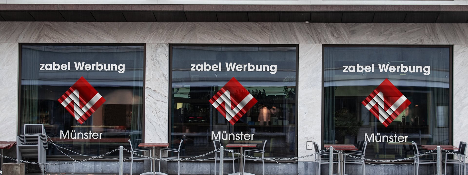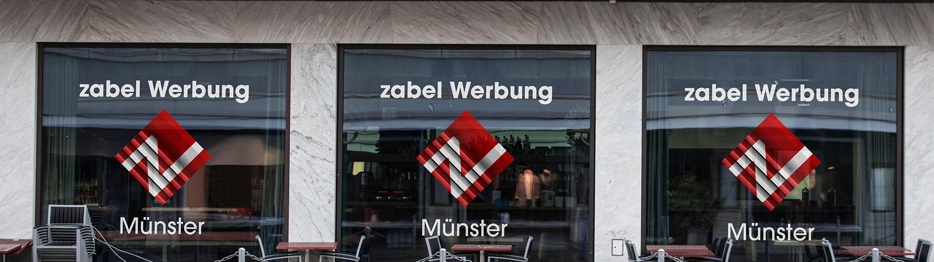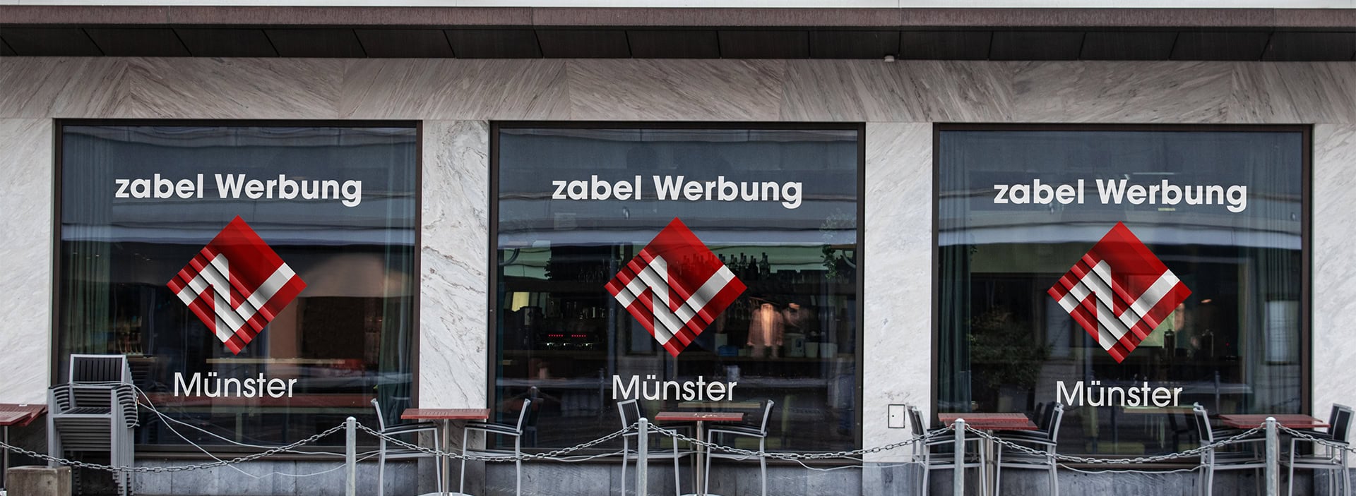 Ein weiterer Vorteil: Der Glasdekor ist flexibel und kann bei Bedarf problemlos geändert oder erneuert werden. So bleiben Sie mit der Zabel Werbung GmbH aus Münster jederzeit anpassungsfähig, ohne auf Qualität und Design zu verzichten.