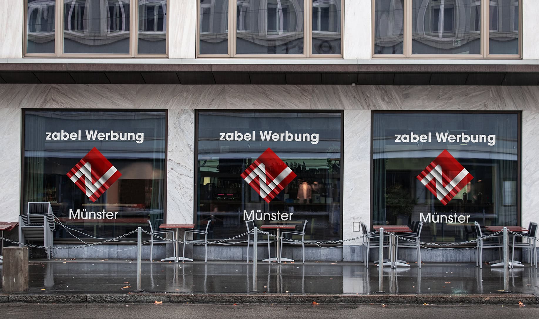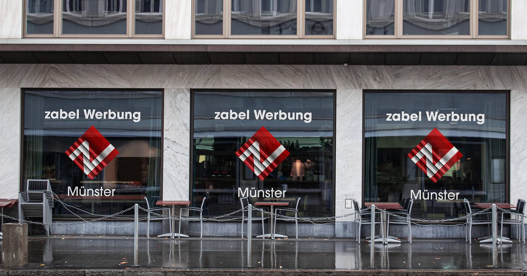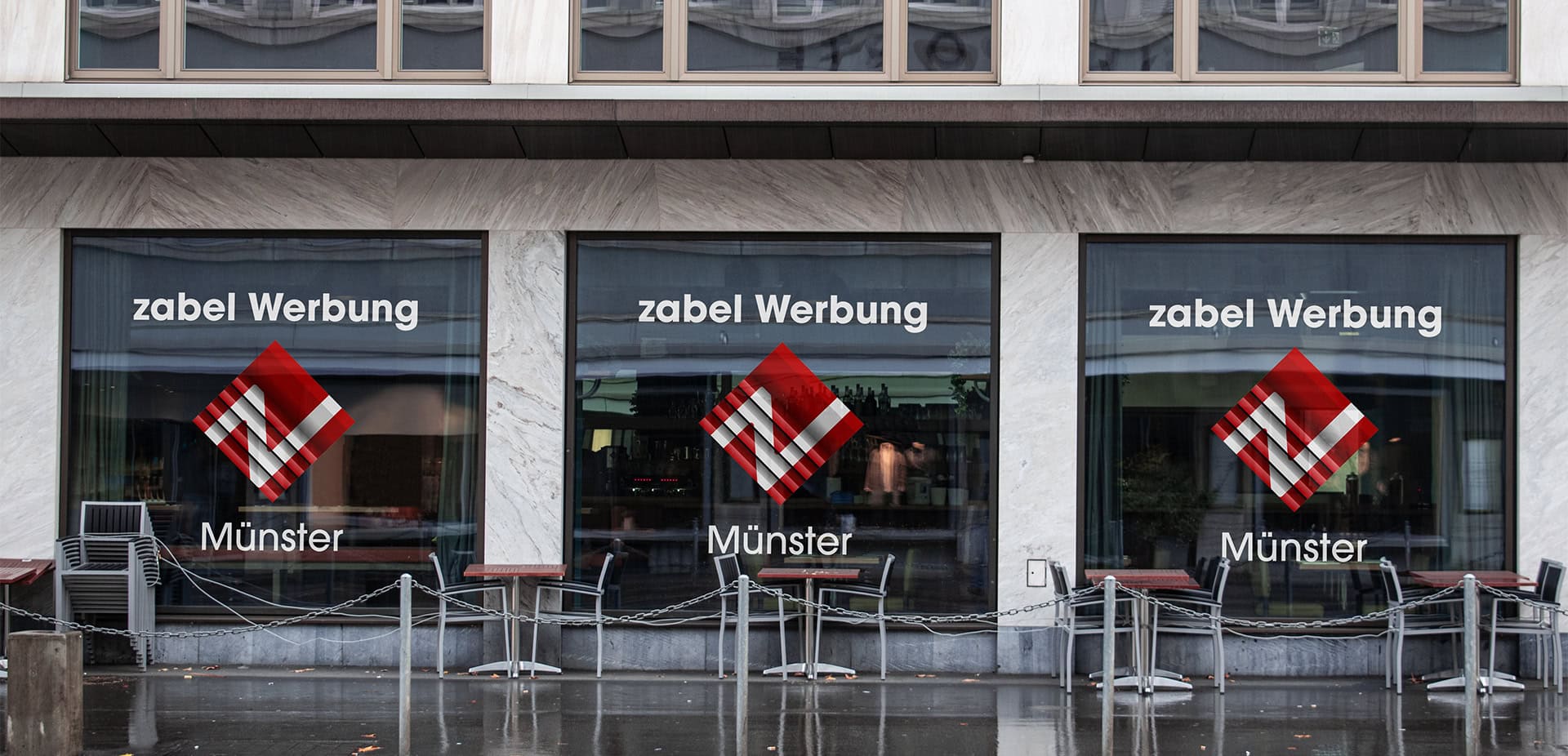 Ein weiterer Vorteil: Der Glasdekor ist flexibel und kann bei Bedarf problemlos geändert oder erneuert werden. So bleiben Sie mit der Zabel Werbung GmbH aus Münster jederzeit anpassungsfähig, ohne auf Qualität und Design zu verzichten.